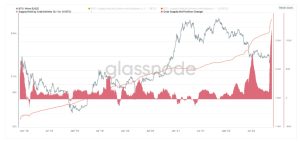 Enquanto caranguejos e camarões acumulam quantidades recordes de Bitcoin, grandes investidores de Bitcoin estão vendendo. De acordo com a Glassnode, as baleias Bitcoin liberaram cerca de 6.500 BTC, ou US$107 milhões, para exchanges no mês passado, o que continua sendo uma parcela muito pequena de suas participações totais de 6,3 milhões de BTC, US$104 bilhões.