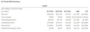 A empresa relatou um forte crescimento nas receitas de data centers, com US$22,6 bilhões, impulsionado pela aceleração da demanda por treinamento generativo em IA.