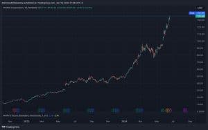 As ações da Nvidia estão sendo negociadas atualmente a cerca de US$135 no momento, após um desdobramento de ações de 10 por 1 que entrou em vigor no início de junho. Antes da divisão, as ações da Nvidia eram negociadas a cerca de US$1.200.