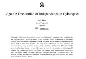O projeto LOGOS prevê uma mudança em direção a “estados em rede”, um termo popularizado nos últimos anos para descrever comunidades soberanas que se formam primeiro na nuvem antes de adquirirem território físico. Ao contrário das nações tradicionais, unidas por terra e nascimento, essas entidades emergentes são definidas por associação voluntária e valores compartilhados. Hope afirma que as ferramentas para construir essas novas sociedades já existem na forma da tecnologia blockchain.