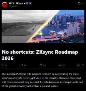 À medida que a ZKSYNC se prepara para descontinuar seu protocolo legado ZKSYNC LITE ainda em 2026, o foco mudou completamente para esse ecossistema mais avançado. O roteiro representa uma aposta de que a principal barreira à adoção institucional não é mais apenas a regulamentação, mas a disponibilidade de infraestrutura robusta. O ZKSYNC LITE será desativado em 2026. Se esses sistemas de produção puderem ser dimensionados para trilhões de dólares em volume anual, conforme projetado, isso marcará o início de uma infraestrutura financeira verdadeiramente incorruptível.