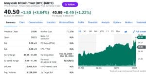 Além da BlackRock, o ETF Bitcoin Trust (GBTC) da Grayscale também começou a ser negociado no pré-mercado. As ações do GBTC subiram 2% durante o horário de negociação pré-mercado. O GBTC está listado na Bolsa de Valores de Nova York.