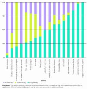A Cardano Foundation, organização sem fins lucrativos dedicada à promoção da adoção blockchain, recentemente divulgou um guia abrangente sobre o ecossistema que destaca como diversos projetos na blockchain Cardano estão atendendo às necessidades das empresas. A pesquisa, que analisou 582 projetos em construção sobre a blockchain Cardano, enfatiza como esses projetos estão transformando indústrias ao focarem em três verticais principais: rastreabilidade, autenticidade e sustentabilidade.
