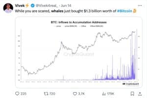 “Enquanto você está com medo, as baleias acabaram de comprar US$1,3 bilhão em Bitcoin.”