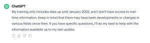 No momento, o chatbot de IA gratuito e disponível ao público da OpenAI, ChatGPT-3.5, só estava equipado com dados de treinamento até janeiro de 2022.
