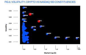 Fracassi disse que isso coloca os ativos criptográficos em um perfil de risco muito semelhante às classes de ativos tradicionais, como ações de tecnologia: