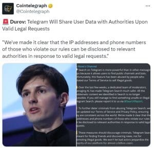 O Telegram começará a compartilhar dados do usuário com autoridades relevantes em resposta a solicitações legais válidas.