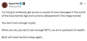 De acordo com Pal, tanto criptomoedas quanto NFTs são oportunidades subvalorizadas que podem nunca mais estar disponíveis a preços tão acessíveis.