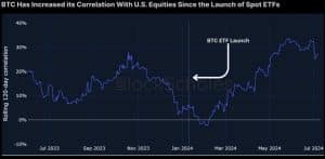 Com base na correlação do Bitcoin com ações tradicionais, os investidores institucionais impulsionaram principalmente o rali do Bitcoin em 2024, de acordo com o relatório: