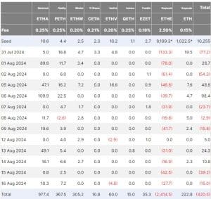 O preço do Ether tem estado em uma tendência de baixa significativa, apesar do lançamento histórico dos primeiros fundos negociados em bolsa (ETFs) de Ether spot nos Estados Unidos.