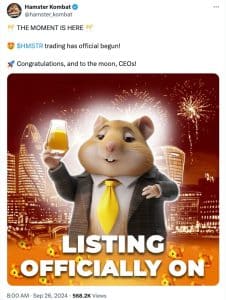 Logo após o anúncio de listagem de estreia do HMSTR, o Hamster Kombat relatou que a Binance havia aberto a negociação de futuros para o token.