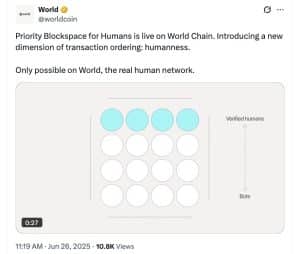 Com mais de 13 milhões de usuários verificados pelo Orb, a World Chain está se esforçando para construir o que chama de rede humana real, com inclusão rápida garantida e execução previsível de transações.