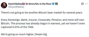 O próximo mercado de baixa do Bitcoin pode estar a anos de distância, de acordo com David Bailey, empreendedor e consultor de Bitcoin do ex-presidente dos EUA, Donald Trump. Bailey cita a crescente participação institucional como um fator-chave que sustenta o impulso ascendente sustentado no mercado de criptomoedas. No entanto, ciclos históricos e riscos macroeconômicos sugerem que cautela ainda é necessária.