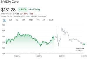 O preço das ações da Nvidia teve um aumento de 3,67%, fechando em US$131,28. No entanto, as ações ainda não se recuperaram totalmente de sua máxima histórica de mais de US$147, alcançada em novembro.