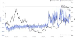 A comparação de dados do Blockchain.com e do Glassnode mostra uma correlação direta entre o lançamento do Bitcoin Runes – uma alternativa aos Bitcoin Ordinals e ao protocolo BRC-20 no blockchain do Bitcoin – e o aumento nas transações diárias de Bitcoin.