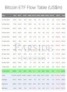 Dos ETFs Bitcoin aprovados nos EUA, o WisdomTree Bitcoin Fund (BTCW) registrou as entradas mais baixas de US$52,3 milhões até o momento, enquanto o IBIT detém a maior parte, em US$11,4 bilhões. No outro extremo do espectro, o Grayscale Bitcoin Trust (GBTC) reduz o fluxo líquido diariamente. No total, o GBTC derramou US$11,1 bilhões nos últimos 13 dias.