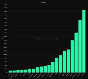 A rede Tron excedeu as receitas da Ethereum nos últimos 90 dias, acumulando aproximadamente US$435 milhões em taxas em comparação com as receitas de taxas do Ethereum de aproximadamente US$364 milhões, de acordo com dados do Token Terminal.