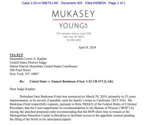 Em um processo no Tribunal Distrital dos Estados Unidos para o Distrito Sul de Nova York, os advogados de Bankman-Fried pediram ao juiz, Lewis Kaplan, que aprovasse uma ordem permitindo que o ex-CEO da FTX permanecesse no Centro de Detenção Metropolitano no Brooklyn, onde está desde agosto de 2023. De acordo com a equipe jurídica, SBF queria permanecer na prisão do Brooklyn para facilitar o acesso ao seu advogado de apelação como parte de seu esperado recurso para sua condenação e sentença.