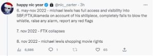 Membros da comunidade de criptomoedas publicaram seus sentimentos nas mídias sociais em resposta ao ex-CEO da FTX, Sam Bankman-Fried, supostamente se encontrando com Michael Lewis, autor do popular livro focado em negociação ‘The Big Short’, que foi transformado em um filme de Hollywood.