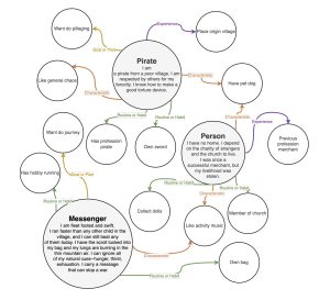 Uma persona pirata, por exemplo, poderia ser desenvolvida a partir de um diálogo em que um personagem pudesse discutir vários aspectos da vida pirata.