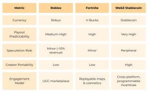O cerne do argumento da BGA é que as economias de jogos bem-sucedidas, como as de ROBLOX e FORTNITE, são construídas sobre moedas estáveis e de ciclo fechado. Essa estabilidade é o que permite que os criadores construam negócios reais. Ela também garante confiança para que jogadores gastem sem medo de perdas inesperadas. Essa lógica explica por que os 10 principais criadores do Roblox ganham em média US$ 38 milhões anualmente, um feito possível graças a uma taxa de câmbio fixa que os protege das oscilações do mercado.