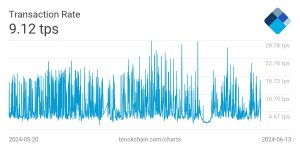 Atingindo máximos de cerca de 28 TPS e mínimos abaixo de 4,5 TPS até junho, o TPS médio no momento era de 9,12 TPS.