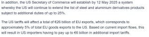 Recentemente, a Comissão Europeia anunciou planos para implementar contra-tarifas sobre €26 bilhões (US$28 bilhões) em produtos dos EUA, com início previsto para abril. Essa ação foi uma resposta direta à recente aplicação pelo presidente dos EUA, Donald Trump, de uma tarifa de 25% sobre importações de aço e alumínio, uma medida que aumentou as tensões comerciais entre as duas potências econômicas.