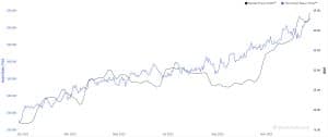 Em 25 de dezembro, Natal, a taxa de hash do Bitcoin atingiu um máximo histórico de 544 exahashes por segundo (EH/s), de acordo com Blockchain.com. Os dados foram confirmados pelo Bitinfocharts, que relatou um pico médio de taxa de hash no fim de semana.