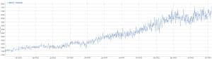A taxa de hash está em uma tendência de alta constante desde 2021, mostram os dados do BitInfoCharts. A escalada da taxa de hash está amplamente correlacionada com os desenvolvimentos em hardware de mineração, como circuitos integrados específicos para aplicativos (ASICs).
