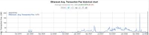 Por quase dois anos, entre janeiro de 2021 e maio de 2022, a taxa média de gás exigida pela rede Ethereum foi de aproximadamente US$40, com 1º de maio de 2022 registrando o maior custo de gás de US$196.638 – conforme evidenciado pelos dados do BitInfoCharts.