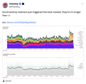 “Os reivindicadores do airdrop do Scroll acabaram de acionar o mercado de blobs, eles não são mais livres.”