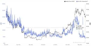 As taxas médias associadas a cada transação de Bitcoin caíram para seu nível mais baixo em 4 anos, em US$38,69, um valor visto pela última vez no pico da pandemia de COVID-19 em 2020.