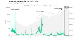 Como resultado, todos os grandes períodos de alta desde 2012 resultaram num aumento correspondente nas taxas, exceto na corrida de touros de 2021, quando o preço do Bitcoin (BTC) atingiu os 69.000 dólares, mas as taxas de transação permaneceram relativamente baixas.
