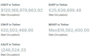 O USDT da Tether, a maior stablecoin do mundo, ultrapassou a marca de US$120 bilhões, de acordo com o site da empresa, que oferece atualizações ao vivo do fornecimento da stablecoin.