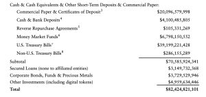 De acordo com a última declaração, a Tether continuou a reduzir seu portfólio atual de papéis comerciais, diminuindo seus volumes para US$11 bilhões. A empresa espera reduzi-lo ainda mais para US$8,4 bilhões até o final de junho de 2022, eventualmente com o objetivo de limpar seu suporte de papel comercial, diz o comunicado: