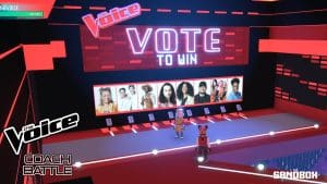 Além de ser uma versão gameficada do programa de sucesso, a experiência do metaverso também incentiva os fãs a jogar junto com a 25ª temporada de The Voice da NBC dentro do jogo.