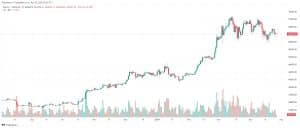 Apesar da contagem recorde de transações, o preço do Bitcoin permanece moderado, pouco acima da marca de US$64.000. A primeira criptomoeda do mundo caiu mais de 9% no gráfico mensal, segundo dados da CoinMarketCap.