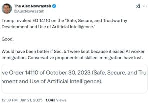 Os críticos da revogação dessas proteções levantaram a preocupação de que a remoção dessas proteções pode deixar o público em risco. Alondra Nelson, pesquisadora sênior do Center for American Progress, chamou isso de “autodestrutivo” e alertou que pode prejudicar a confiança nas tecnologias de IA entre o público em geral.