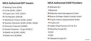 De acordo com Patrick Hansen, diretor sênior de estratégia e política da UE na Circle, os emissores aprovados incluem uma mistura de empresas estabelecidas e novos participantes, como Banking Circle, Circle, Crypto.com, Fiat Republic, Membrane Finance, Quantoz Payments, Schuman Financial, Société Générale, StabIR e Stable Mint.