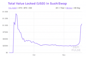 Em contraste, o TVL do SushiSwap disparou quase 160% desde então, de US$ 407 milhões para US$ 1,05 bilhão. Atualmente, mais de 313% desde uma semana atrás.