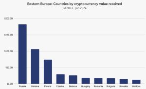 A Europa Oriental recebeu mais de US$499 bilhões em criptomoedas entre julho de 2023 e junho de 2024.