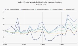 Na Ucrânia, as transferências institucionais e profissionais impulsionaram grande parte do crescimento do mercado. De acordo com a Chainalysis, grandes transferências institucionais de mais de US$10 milhões e transferências institucionais de médio porte de US$1 milhão a US$10 milhões foram responsáveis pela maioria das transações em 2024.