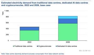 A IA liderará de longe o caminho, prevendo-se que o consumo de energia da IA aumente dez vezes entre 2023 e 2026. Espera-se que o ChatGPT sozinho consuma quase 10 TWh por ano nesse período. Cada solicitação ChatGPT consome quase 10 vezes a energia de uma pesquisa no Google.