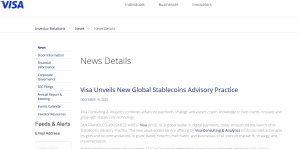 (A VISA lançou uma prática global de consultoria em stablecoins.)