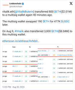 Um membro da comunidade de criptomoedas acusou Buterin de despejar mais de US$2 milhões em Ether (ETH). A empresa de análise onchain, Lookonchain, sugeriu ainda que o mesmo endereço de carteira recebeu 3.000 ETH do empreendedor.