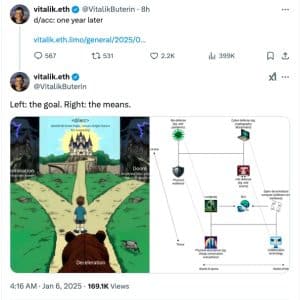 Em 5 de janeiro de 2025, em uma postagem de blog, Buterin propõe que reduzir o poder de computação global em até 99% por um período de 1 a 2 anos pode nos dar tempo para desenvolver mais profundamente a chegada de sistemas de IA superinteligentes.