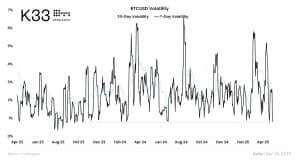 De acordo com Vetle Lunde, chefe de pesquisa da K33 Research, a volatilidade semanal do Bitcoin atingiu a mínima de 563 dias, uma métrica importante que indica maior estabilidade de preços e menor incerteza nas negociações.