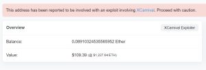 O XCarnival, um provedor de liquidez para o ecossistema Ethereum, recuperou 1.467 Ether (ETH) apenas um dia depois de sofrer uma exploração que drenou 3.087 ETH, no valor de aproximadamente US$3,8 milhões, do protocolo.